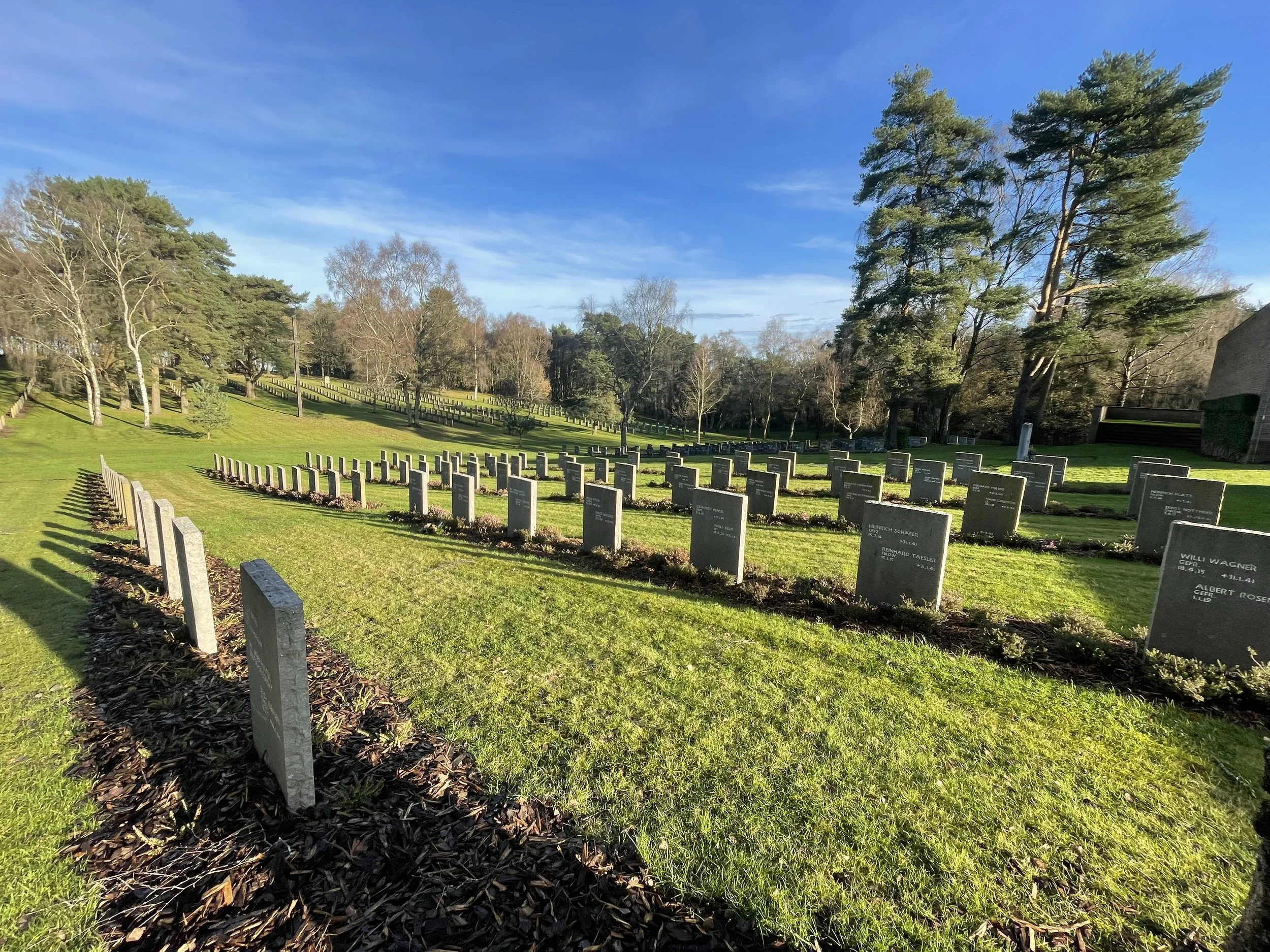 This German War Cemetery was set up to collect almost all the German graves in the United Kingdom there were 2,797 Graves from the second world war and 2,143 from the first world war most of them are Pilots but there are also craves of crew members of crashed planes and of casualties who were washed up.