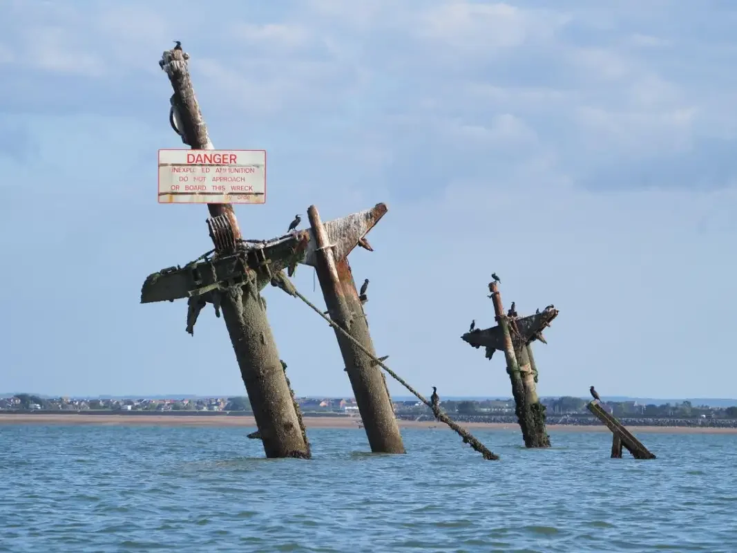 The wreck of the SS Richard Montgomery remains on the sandbank where she sank. The wreck lies across the tide close to the Medway approach channel and her masts are clearly visible above the water at all states of tide. There are still approximately 1,400 tons of explosive contained within the forward holds.