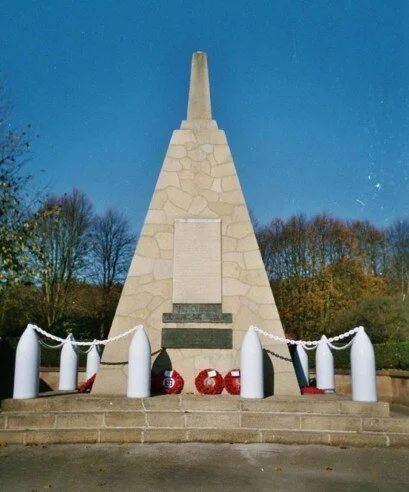 This concrete memorial, flanked by actual shell casings, was built where the explosion was thought to have occurred. It commemorates not only the 134 workers killed in explosion, but also others who lost their lives at the factory in earlier accidents. It is unusual in that, beneath Viscount Chetwynd’s crest, the inscription not only carries the names of the dead, but in addition lists the achievements of the factory.